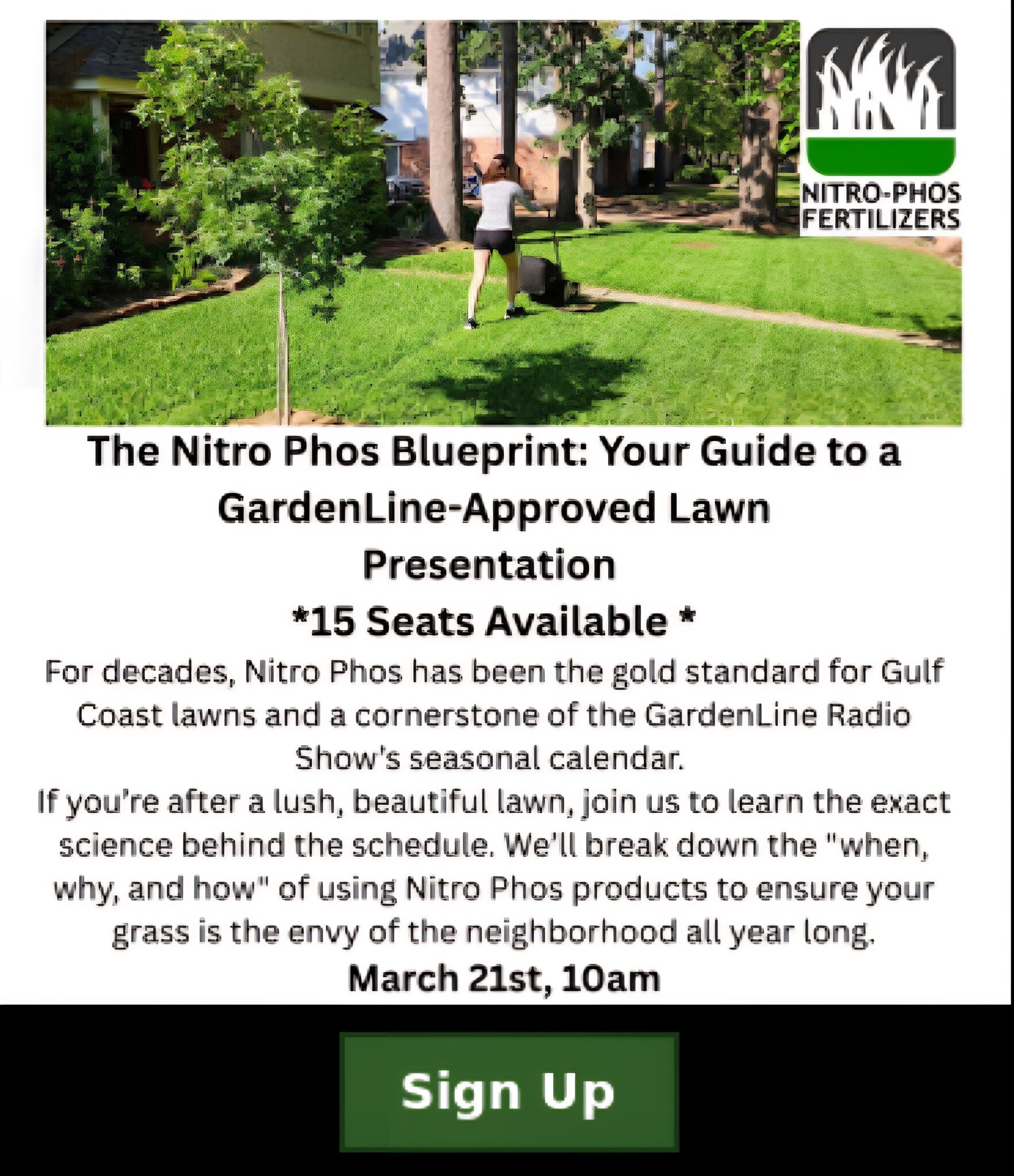 We carry locally grown trees, shrubs, perennials, tropicals, and landscaping supplies — all hand-selected for Houston's climate and soil conditions. Serving Conroe, The Woodlands, Huntsville, Spring, Tomball, and Greater Houston since 1999.